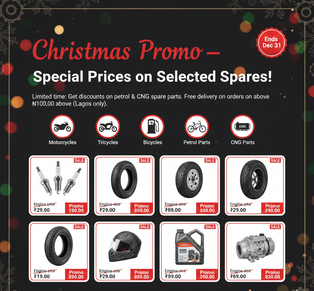 Limited time: Get discounts on petrol & CNG spare parts. Free delivery on orders above ₦100,000 (Lagos only).